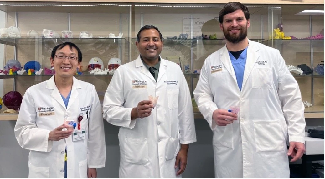 The IBD-Radiology Collaborative group at Washington University School of Medicine in St. Louis is headed by (left to right) Siyan ‘Stewart’ Cao MD, PhD, Parakkal Deepak, MBBS, MS and David H. Ballard, MD. The group is conducting basic, translational and clinical research in the field of perianal Crohn’s Disease from bedside to scanner and bench and back to bedside.